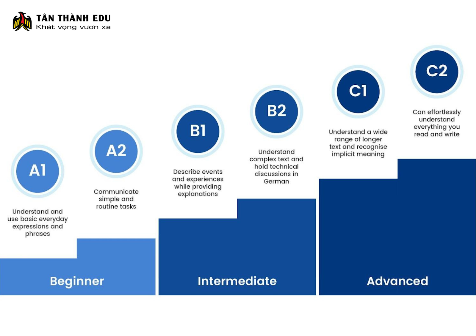 Và nếu bạn đang tìm một nơi để đồng hành, Tân Thành Edu luôn chú trọng vào giai đoạn khởi đầu này. Mỗi học viên đều được định hướng lộ trình riêng, phù hợp với mục tiêu cá nhân. Bởi chúng tôi tin rằng: một nền móng vững chắc sẽ giúp bạn không choáng ngợp khi bước lên những nấc thang cao hơn trong tiếng Đức.