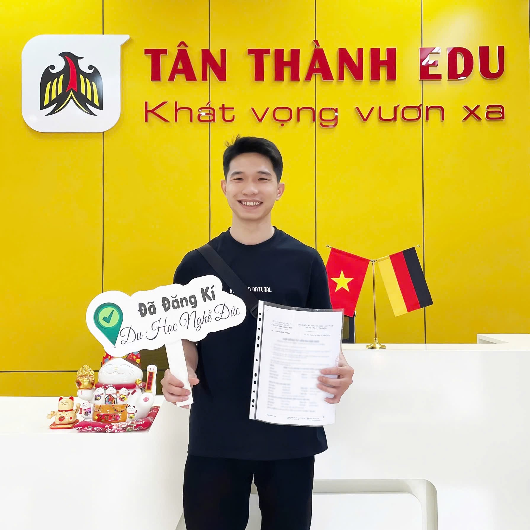 Vào ngày bay, đội ngũ Tân Thành Edu sẽ trực tiếp đưa tiễn bạn tại sân bay, đảm bảo bạn có một chuyến đi đầy thuận lợi, ấm áp và trọn vẹn. Chia tay tại sân bay không phải là điểm cuối của cuộc hành trình mà là điểm khởi đầu cho giai đoạn tiếp theo tại Đức.